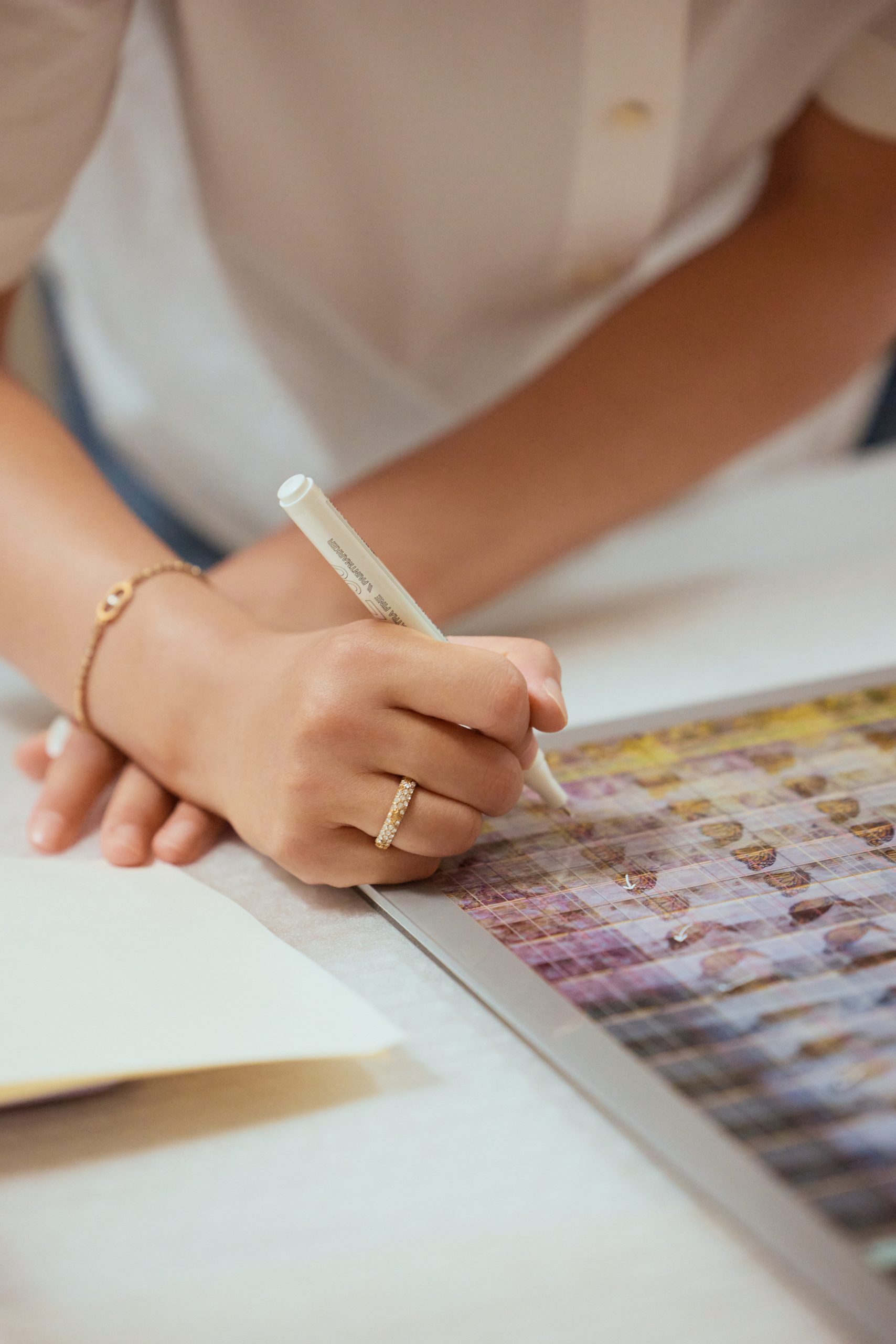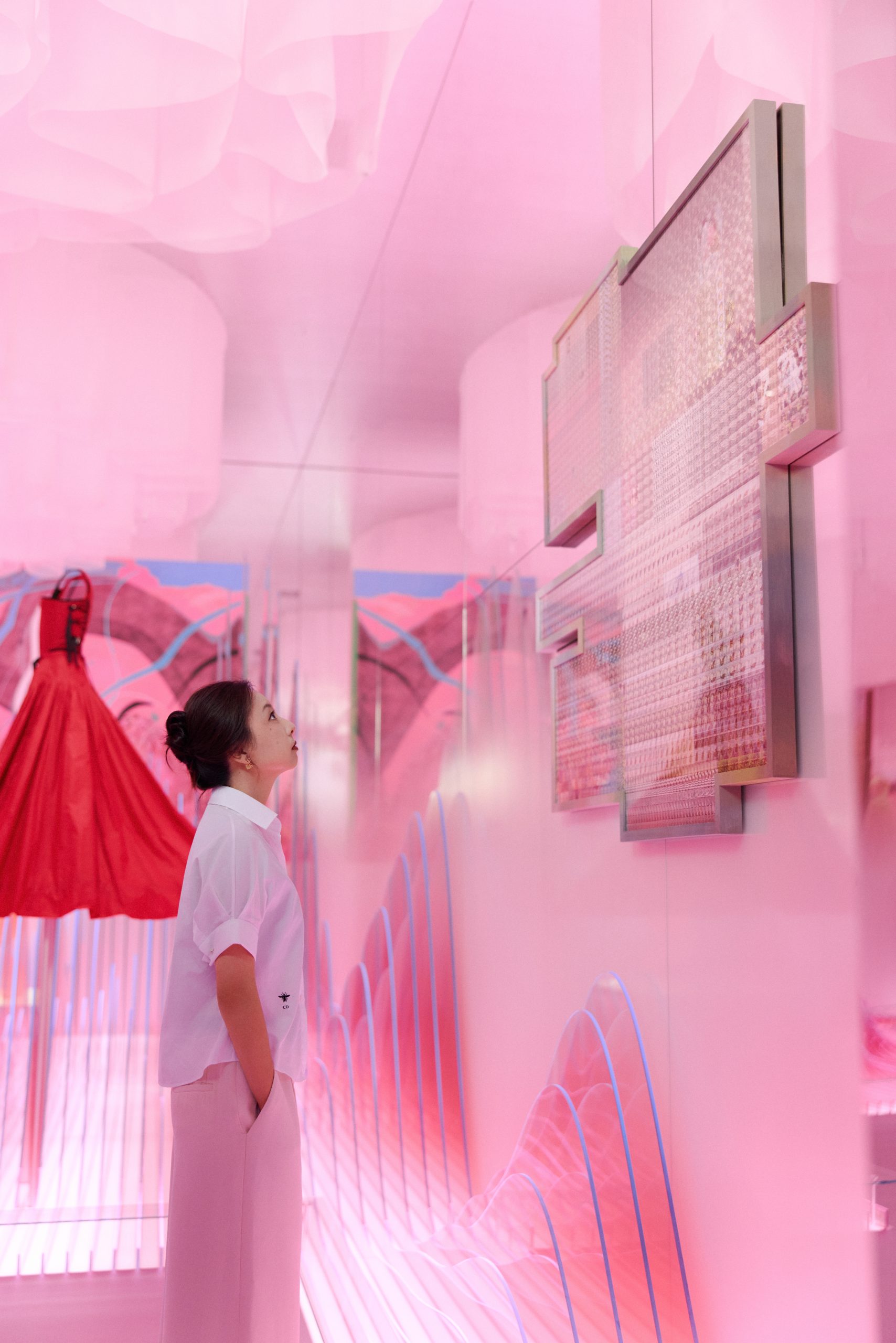 中国艺术家刘诗园以迪奥小姐为灵感,于《迪奥小姐展览:芳踪絮语》倾请呈现作品《当蝴蝶坐下》,为渴望表达自我的新时代先锋女性发声。她试图通过作品探讨图像在视觉饱和时代的影响力和重要性,在拓宽艺术边界的过程中寻找更多表达可能。蒙太奇般的呈现方式与展厅内的高级定制礼服一起,交汇出如梦似幻的视觉效果。作品《当蝴蝶坐下》以图像重组的手法进行创作,如同梦境一般巧妙平衡了建构与解构的叙事,展现出独特的艺术张力。